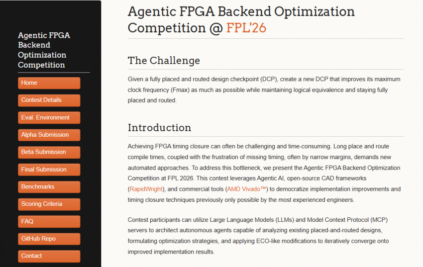 FPL 2026 에서 주최하는 “Agentic FPGA Backend Optimization Competition”을 안내드립니다.